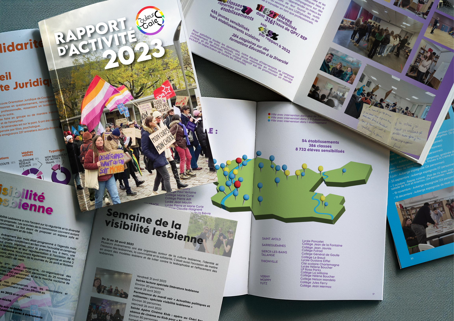 Pour le rapport d’activité 2023 de l’association Couleurs Gaies, j’ai assuré la mise en page complète avec une attention particulière portée à la lisibilité et à la hiérarchisation des contenus. Mon travail s’est concentré sur l’optimisation des blocs de texte et la mise en valeur des informations clés afin de faciliter la lecture et l’appropriation des messages.