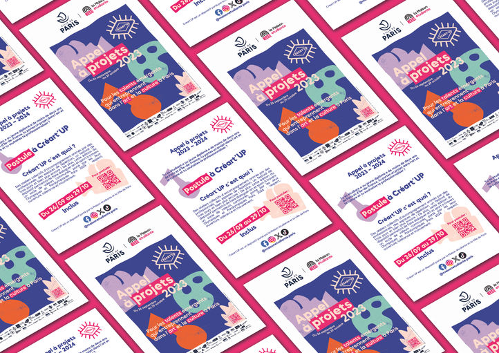 Réalisation d'une affiche pour l'appel à projet culturel "CRÉART'UP" en utilisant la charte graphique. Il fallait valoriser l'aspect multidisciplinaire.
